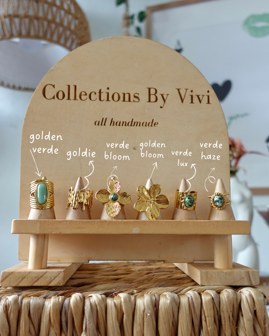 Handcrafted with rich green stones and gold-plated finishes, the Emerald Collection rings blend organic elegance with bold design. Inspired by nature’s tones and made to stand out, each piece offers a timeless statement with a modern, artisanal touch.