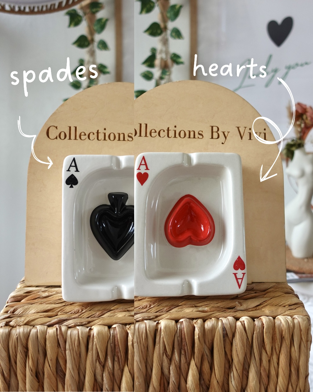 Each Hearts & Spades jewelry and ashtray piece is carefully handcrafted by skilled artisans, blending functional design with artistic expression. Featuring bold card-inspired motifs and refined detailing, every piece is one of a kind, balancing durability, elegance, and timeless character. By choosing these handmade designs, you support artisanal craftsmanship while adding a distinctive statement piece to your everyday space.